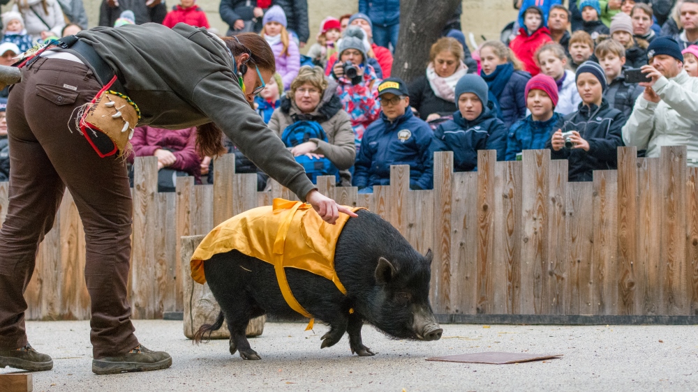 Cvičení s prasátkem, foto: Petr Hamerník, Zoo Praha