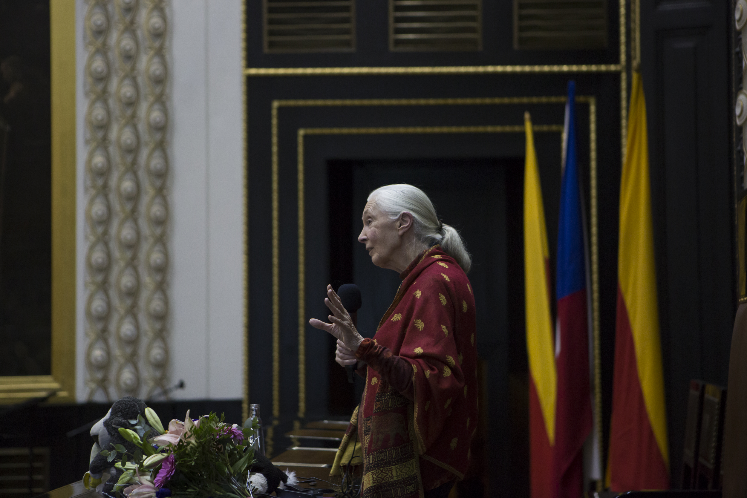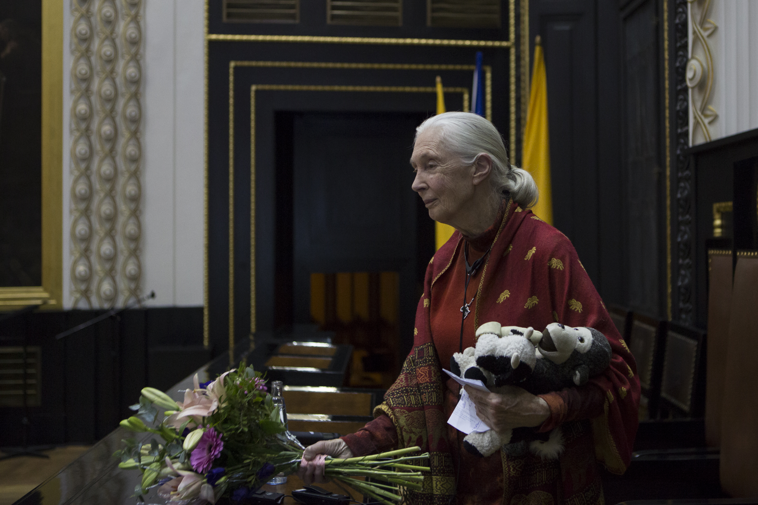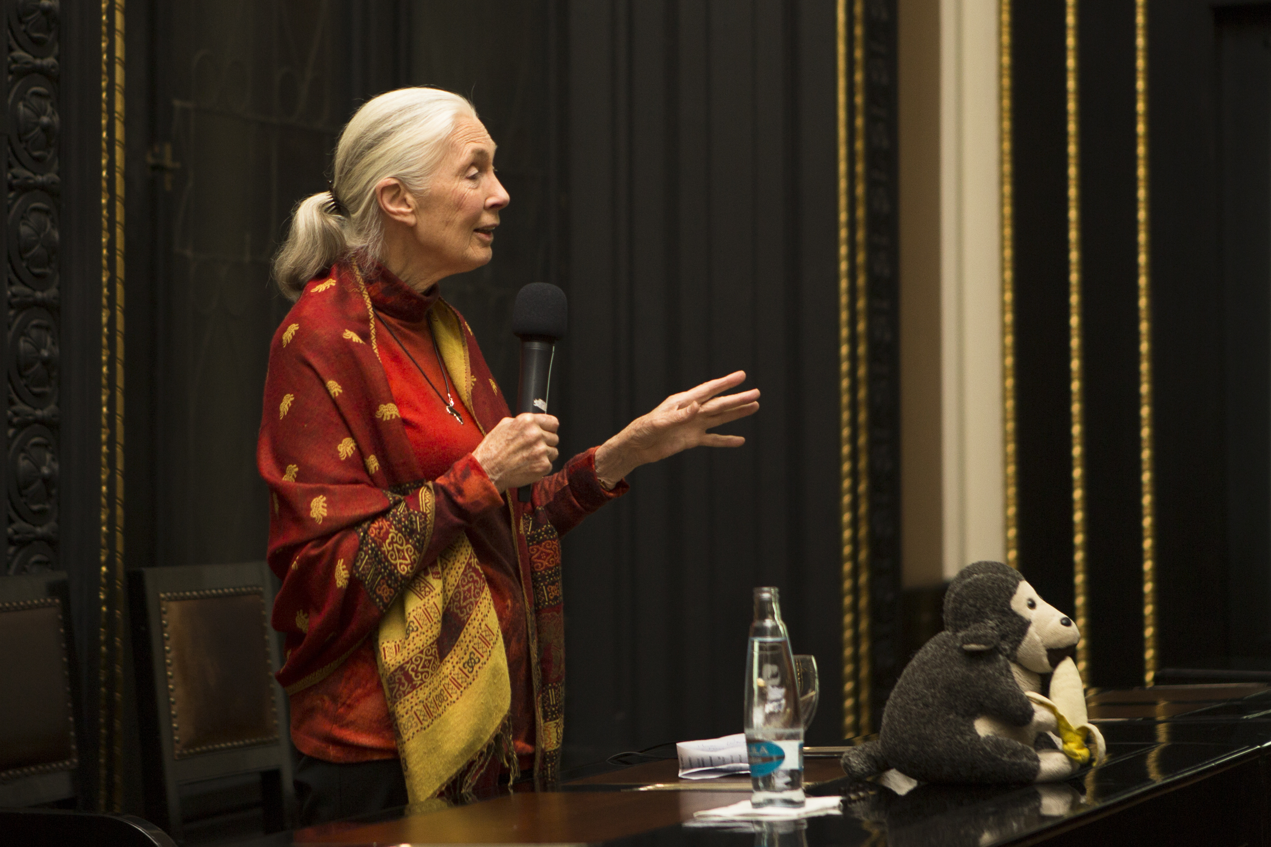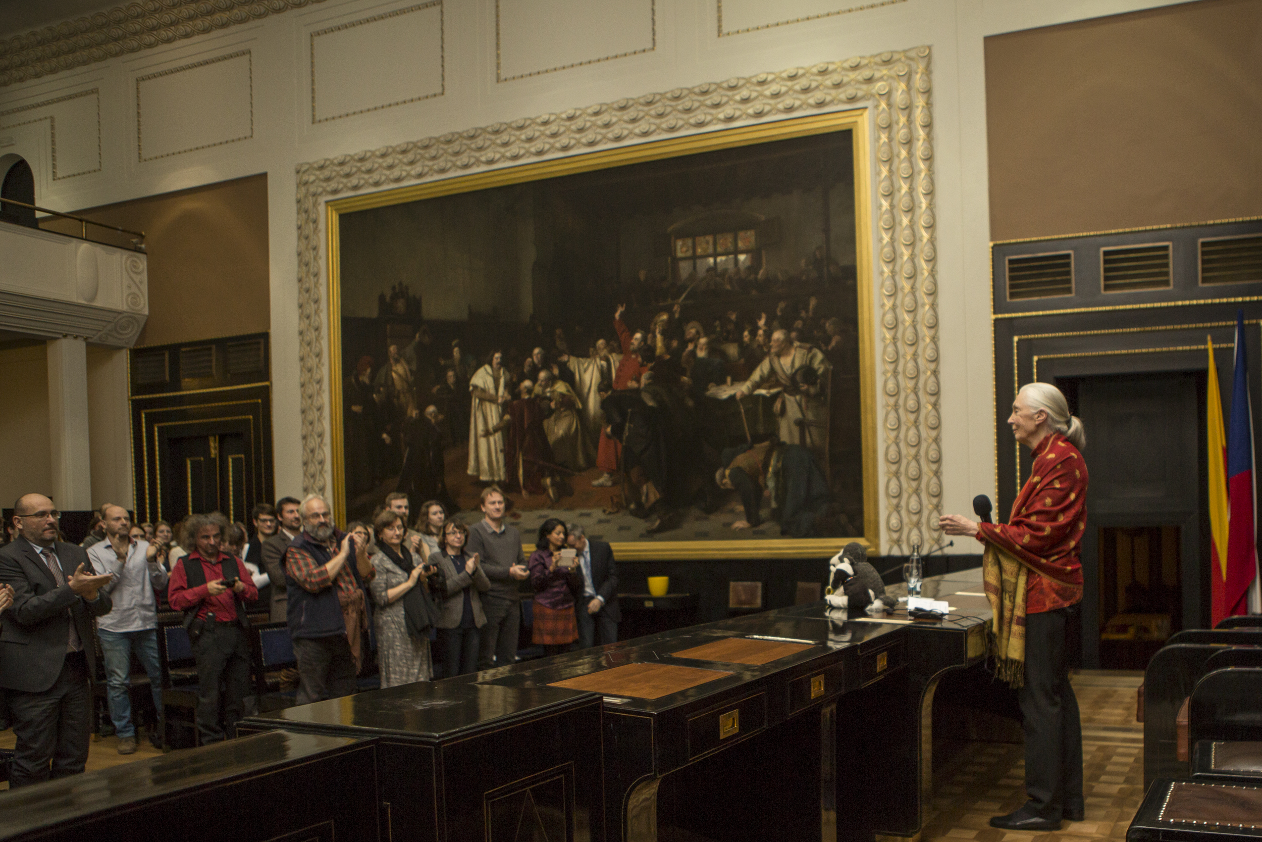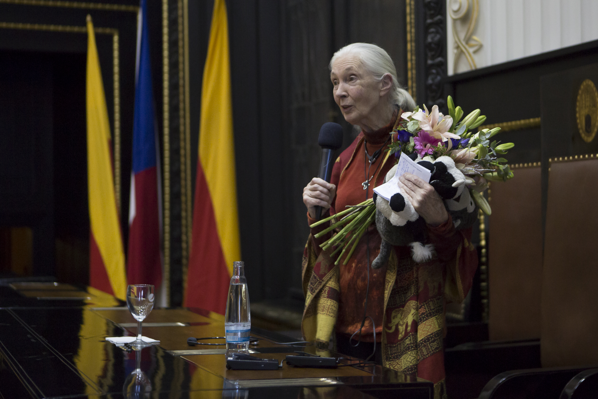 Na pondělí 12. prosince připravila Zoo Praha přednášku Jane Goodall v Brožíkově sále Staroměstské radnice. Účastníci přivítali vzácného hosta potleskem vstoje. Všichni se zaujetím a netajeným obdivem i dojetím naslouchali slovům této noblesní dámy. Po ukončení přednášky vyzvala Jane Goodall přítomné k besedě a zodpověděla všechny individuální dotazy, které jí posluchači položili. V závěru večera proběhla autogramiáda a na podpisy knih a fotografií této fascinující, vzácné osobnosti čekali snad všichni.