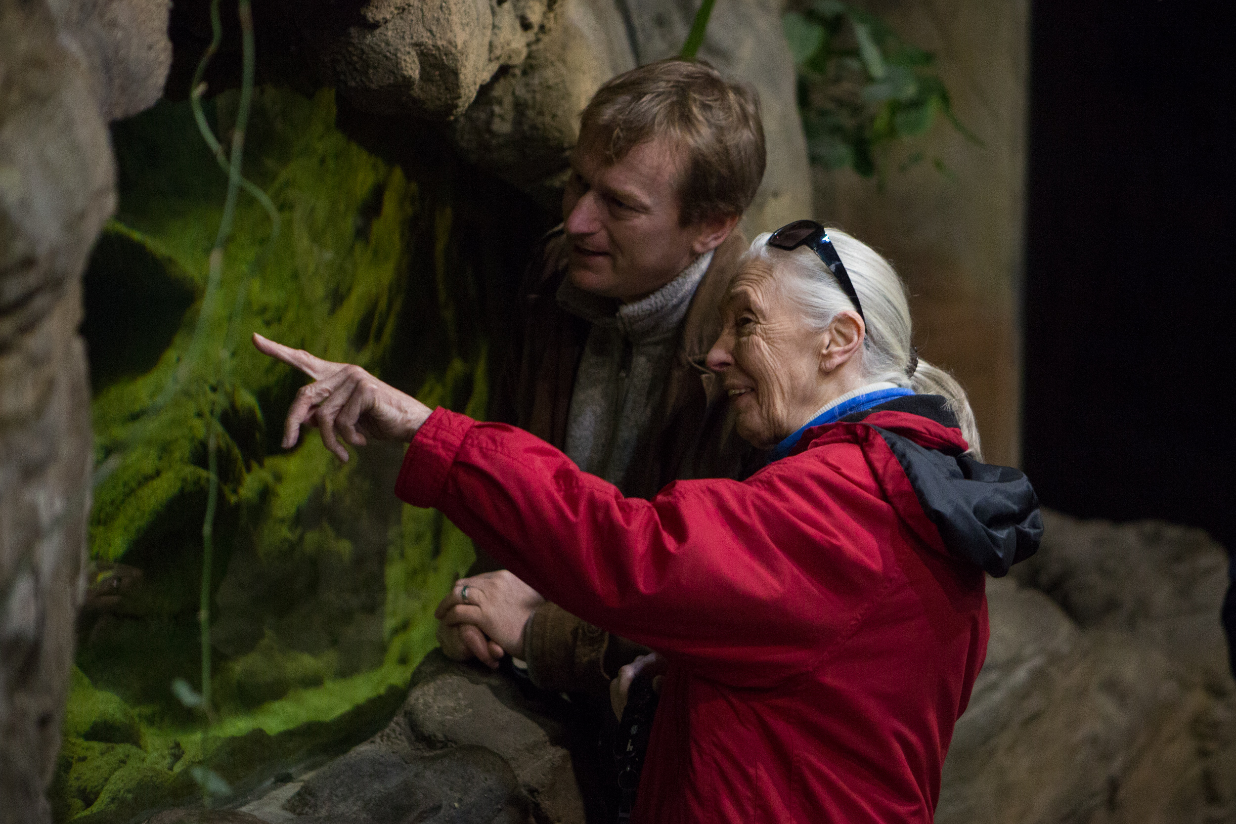 Jane Goodall nejvíce zaujal Pavilon goril a jeho obyvatelé. Foto: Václav Šilha, Zoo Praha Jane Goodall nejvíce zaujal Pavilon goril a jeho obyvatelé. Foto: Václav Šilha, Zoo Praha