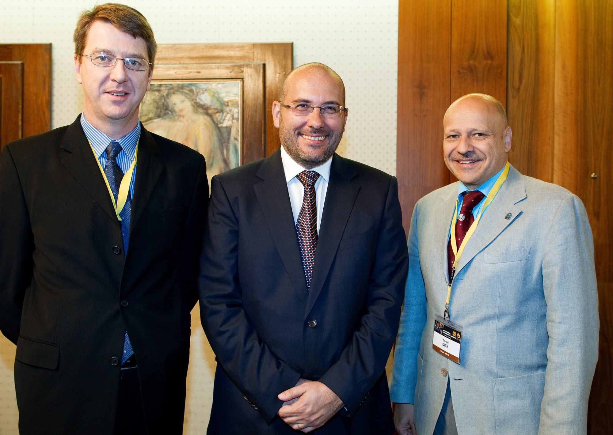Ředitel Zoo Praha Miroslav Bobek spolu s prezidentem WAZA Markem Penningem (vlevo) a výkonným ředitelem Geraldem Dickem (vpravo). Foto: Tomáš Adamec, Zoo Praha