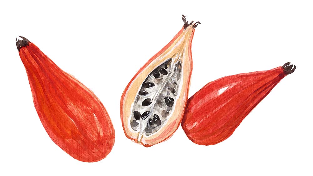 The fruit of the Aframomum has anti-malarial potential. Gorillas eat the fruits and often use the leaves to build their nests. Aframomum is related to ginger.