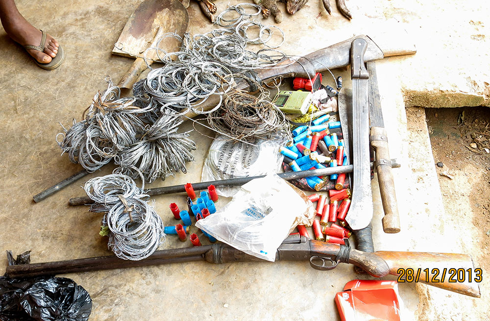 - Pušky zabavené pytlákům. Mnohdy jsou vyrobené podomácku. Vlastníci pušky buď loví sami, nebo ji půjčují nájemným pytlákům spolu s patronami výměnou za určitý počet úlovků.