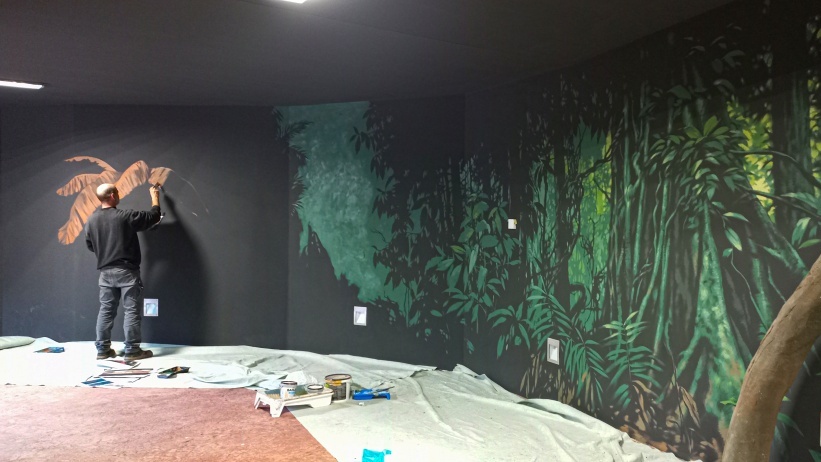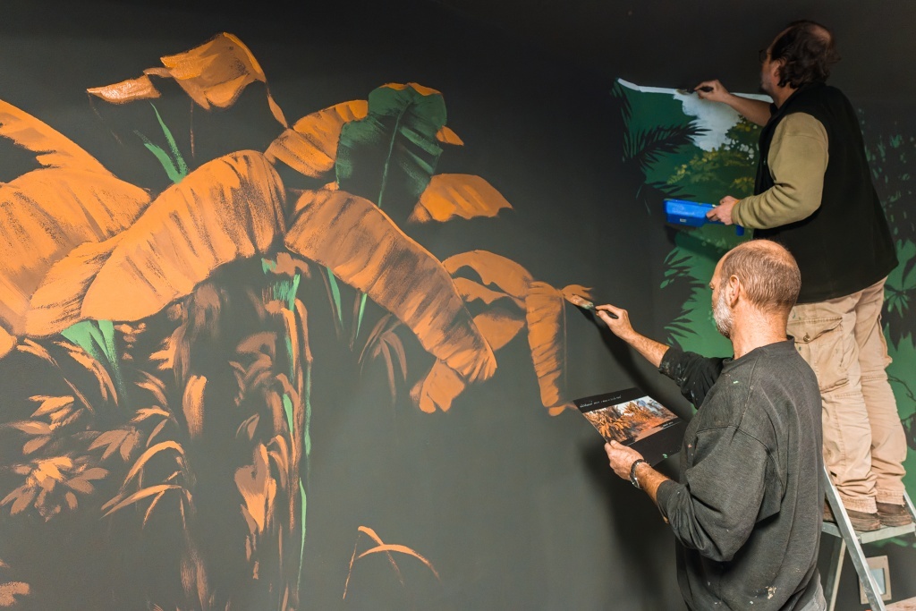 Nástěnné malby vytvářeli výtvarníci pavilonu Roman Hudziec a Kryštof Krejča podle fotografií pořízených v Biosférické rezervaci Dja. Ilustrace živočichů na informačních panelech se ujal malíř Pavel Procházka, rovněž dlouholetý spolupracovník Zoo Praha.