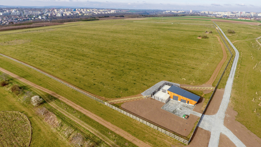 Snímek ohrady se zázemím pro koně Převalského na Dívčích hradech. Foto z dronu: Miroslav Bobek, Zoo Praha Snímek ohrady se zázemím pro koně Převalského na Dívčích hradech. Foto z dronu: Miroslav Bobek, Zoo Praha