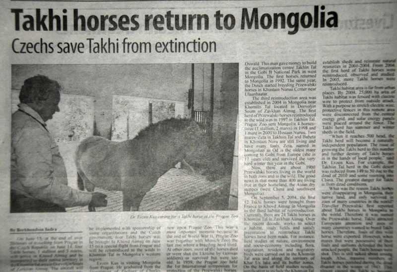 Tou dobou však už byly zaregistrované čtyři televize a několik píšících novinářů. Na zemi s dvěma a půl miliony obyvatel, myslím, velmi slušné… A co víc, ředitel Přírodovědeckého muzea Mongolska, pan Zorigtbátar, se rozhodl obohatit expozici věnovanou koní Převalskému o 24 panelů výstavy o aktivitách pražské zoo s názvem Poslední divoký kůň.