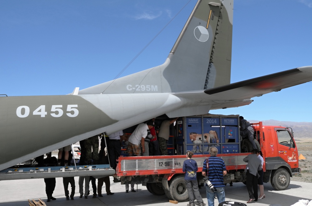 Dosud nejrychlejší transport koní Převalského do Mongolska trval necelých 33 hodin. Po sedmnáctihodinovém letu následoval dvěstěkilometrový pozemní přesun do národního parku Gobi B. Foto: Petr Josek, Zoo Praha
