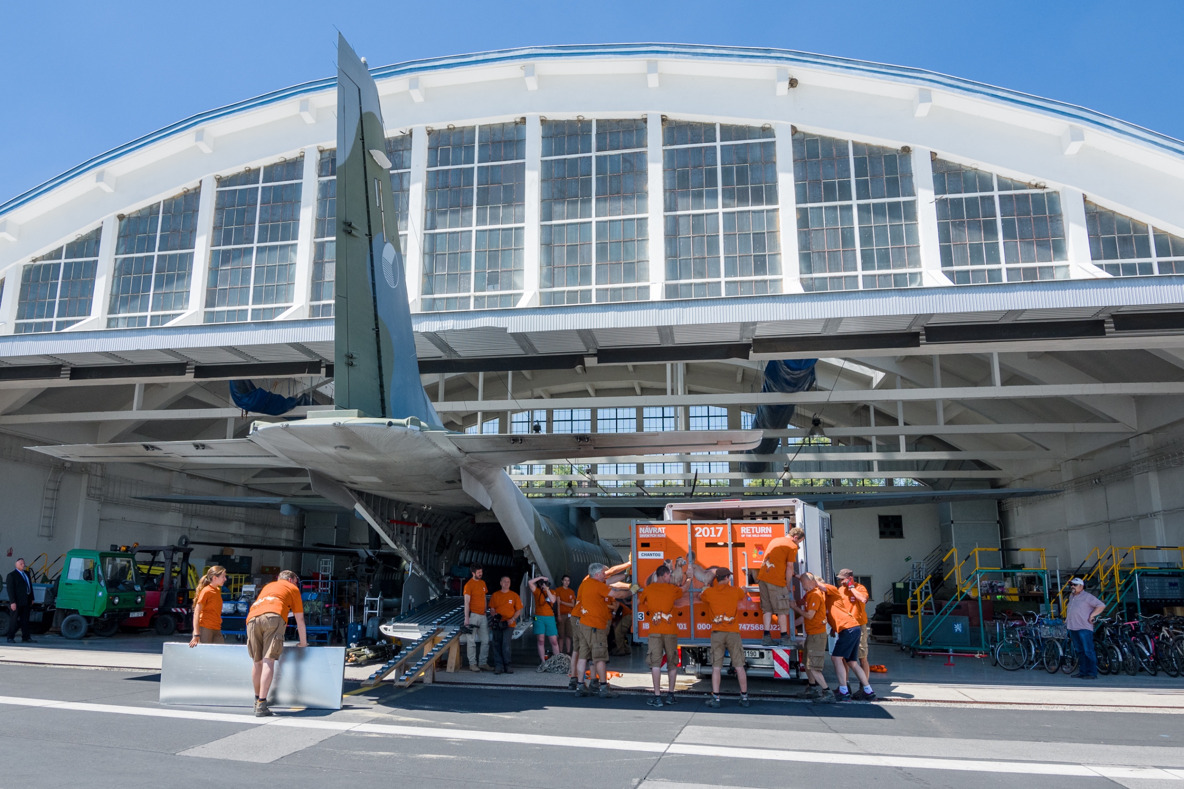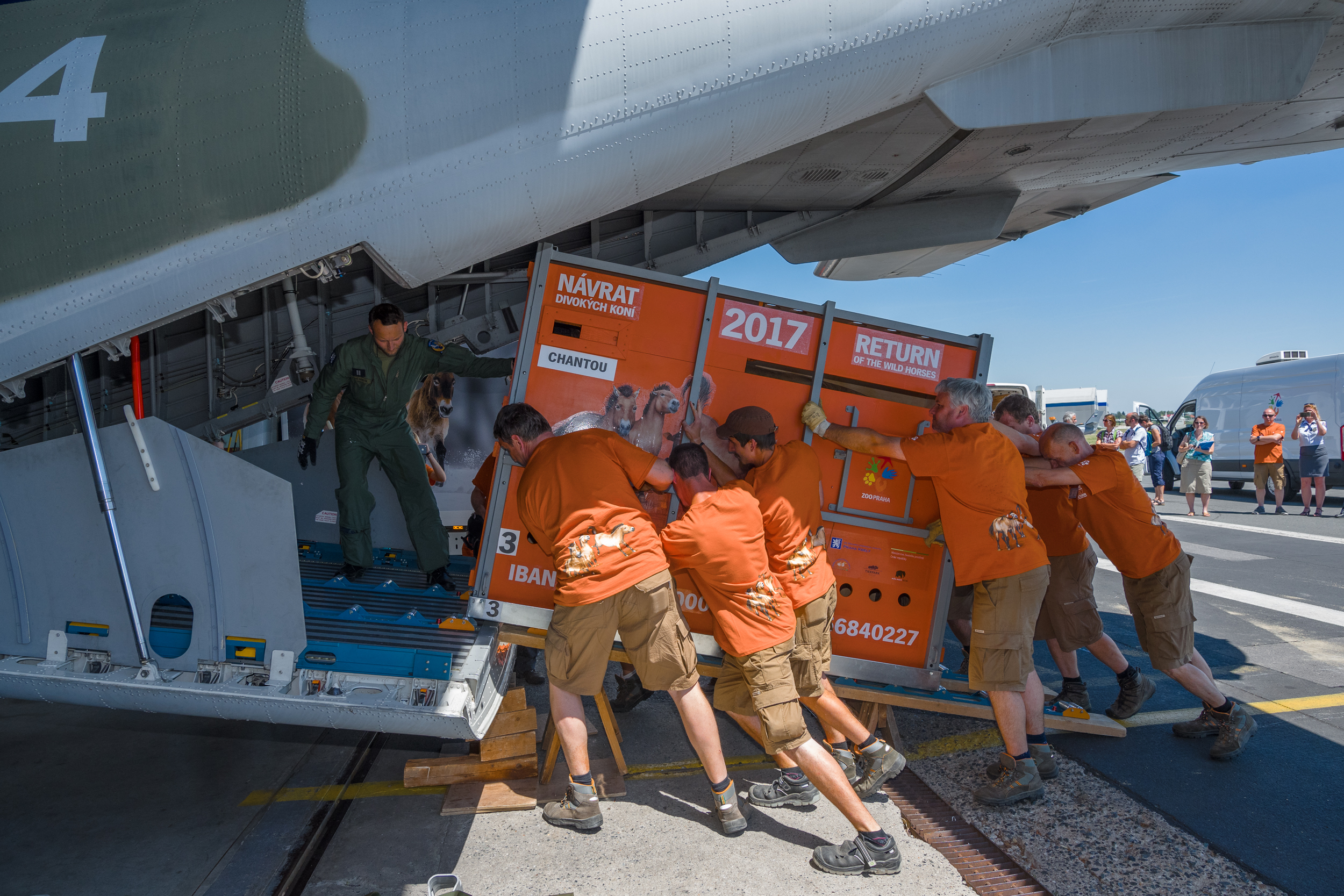 Nakládání jedné ze čtyř klisen do armádního letounu. Foto: Petr Hamerník