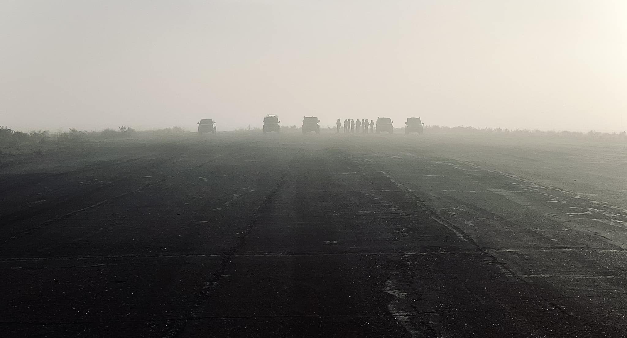 Do ranní mlhy zahalená dráha opuštěného letiště v Arkalyku. Na ni, necelých tři sta kilometrů od cílového bodu, by měla dosedat letadla s našimi převaláky. Foto: Miroslav Bobek, Zoo Praha