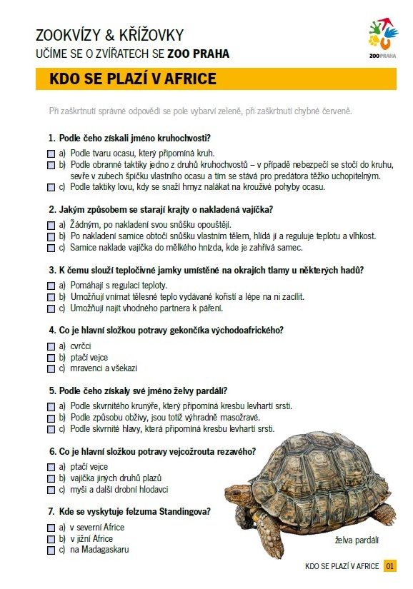 Afrika zblízka nabízí také pohled na mnohé zástupce plazů, ať už se jedná o želvy, hady či ještěry. Seznamte se s nimi a vyplňte si další z našich interaktivních kvízů ZDE.