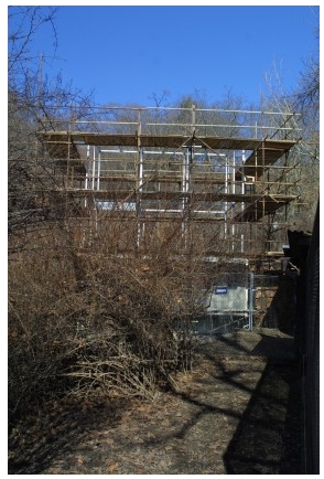 Chovatelské zázemí je pro návštěvníky neviditelné, protože je skryté pod terénem. Do výběhu se lemuři dostávají po provazovém žebříčku nad hlavami návštěvníků.