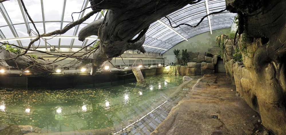Pavilon je určen pro chov hrochů obojživelných, kterých zde může žít až pět. Prosklené čelní stěny bazénů nabízejí návštěvníkům jedinečný pohled na hrochy pod vodou, takřka z očí do očí. Díky tomu plně vynikne ladnost, s níž se tito obři pohybují ve svém domovském prostředí.